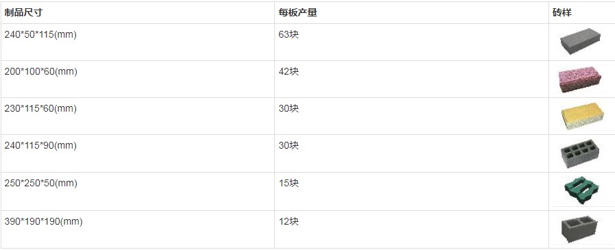三、YH12-15水利護坡磚機產(chǎn)能表: