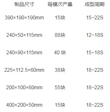 三、全自動15-20歐版仿石PC磚機產(chǎn)能表: